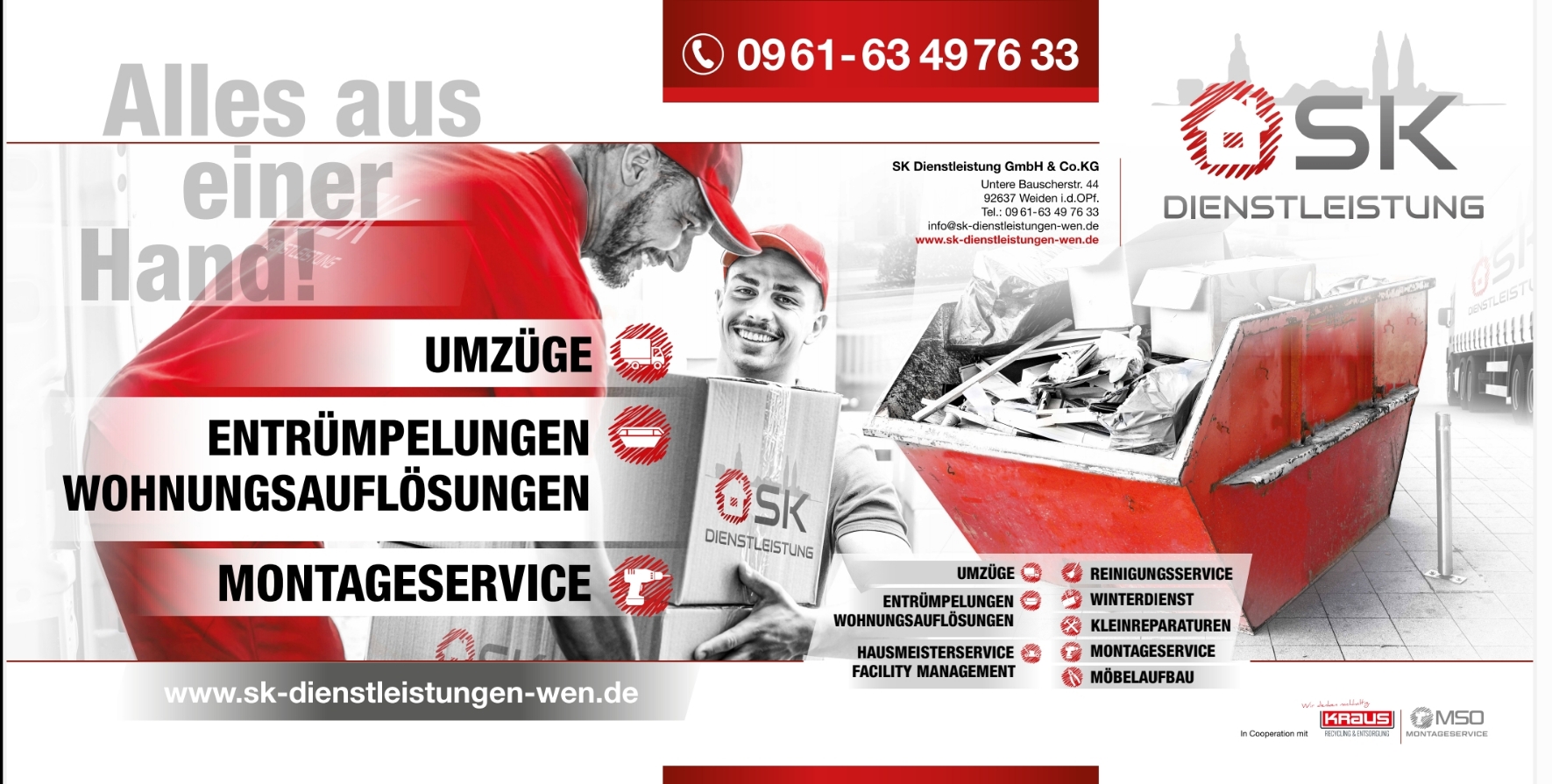 Gemeinsam mit der Firma Kraus Recycling und Entsorgung GmbH und MSO Montageservice GmbH können wir "Alles aus einer Hand" anbieten.